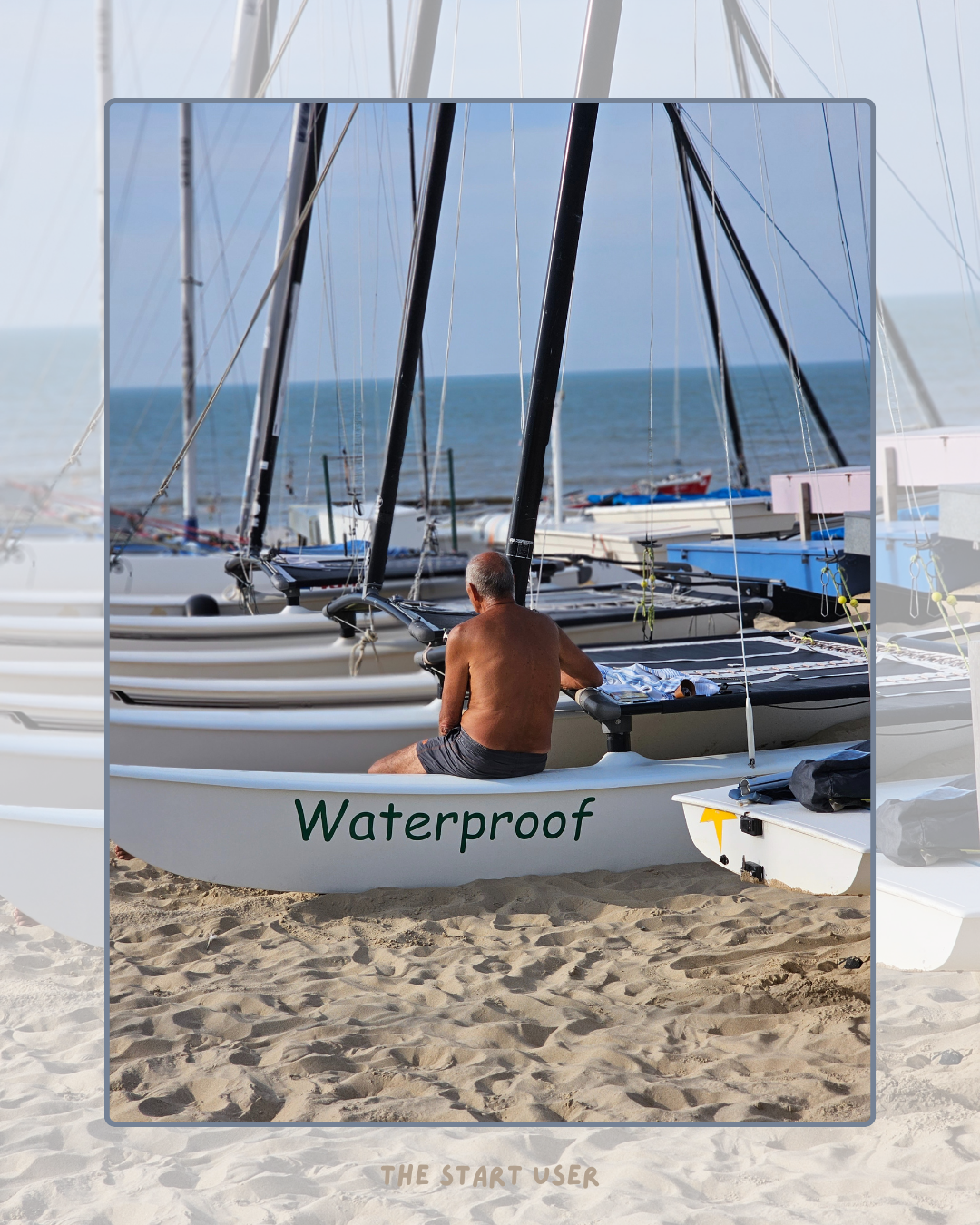 Painted on the side, in large letters, is the boat’s name: “Waterproof”.